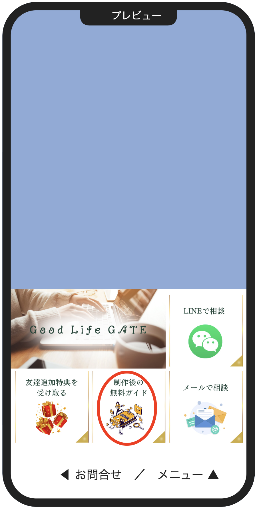 メニュー内容から「無料ガイド」をタップ