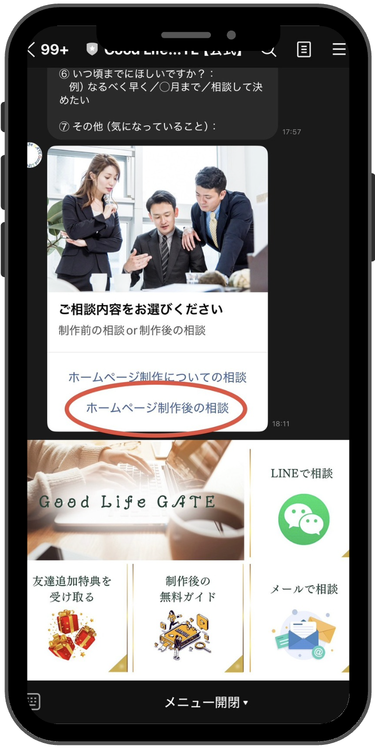 公式LINEから相談内容を送る